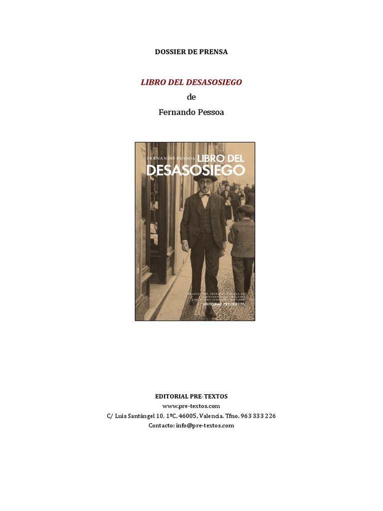 Descarga gratis libro del desasosiego. Libro del desasosiego pdf es uno de los libros de ccc revisados aquí. Libro del desasosiego pdf es uno de los libros de ccc revisados aquí. El libro del desasosiego es entre las obras literarias pero esenciales del siglo xx. Soy yo, menos el raciocinio y la afectividad».